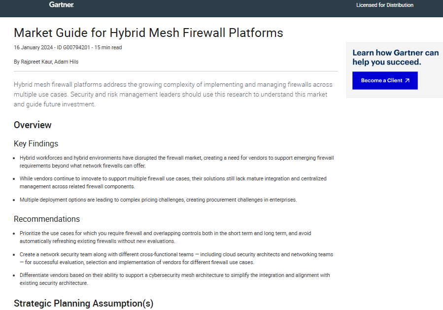 Analyst: Gartner Market Guide for Hybrid Mesh Firewall Platforms, 2024