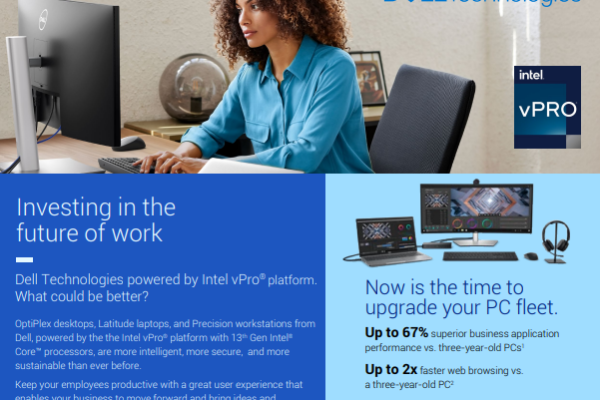 Dell Technologies powered by Intel vPro® platform. What could be better? OptiPlex desktops, Latitude laptops, and Precision workstations from Dell, powered by the the Intel vPro® platform with 13th Gen Intel® Core™ processors, are more intelligent, more secure, and more sustainable than ever before. Keep your employees productive with a great user experience that enables…