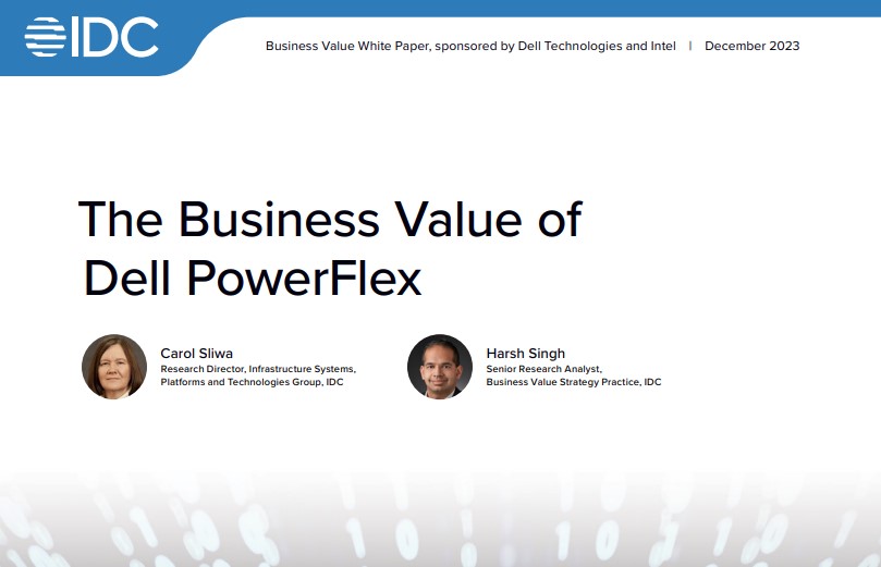 IDC conducted research on the value and benefit that organizations are achieving through the use of Dell PowerFlex to run and manage important business workloads. The research included in-depth interviews with seven companies that have experience with and knowledge about the benefits and costs of using the Dell PowerFlex platform.